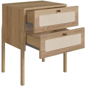 02 gavetas com corrediças metálicas simples e aplique de tela sintética (PVC com poliéster).