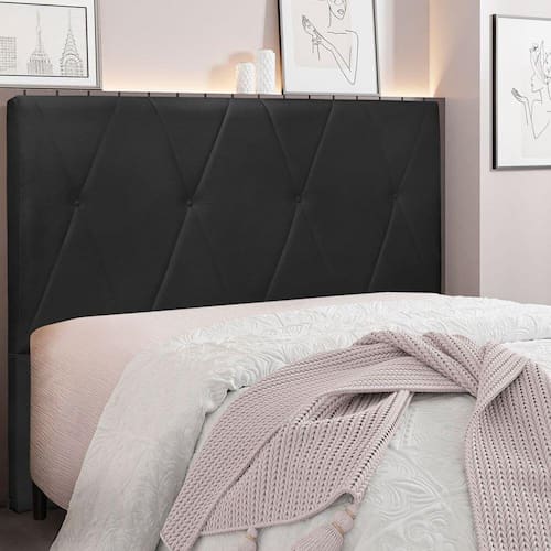 Cabeceira Solteiro 90cm Veludo Aquilla Spezzia Preto