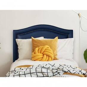 Cabeceira Solteiro Curva Luxo 90x60 Courino Azul - Tachas Fumê