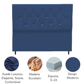 Cabeceira Solteiro Cama Box Estofada 90 Cm Suede Eva Cor:azul Marinho