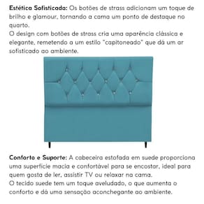 Com botões Strass, dispostos em uma padronagem elegante, trazem um brilho sutil e adicionam um toque de glamour à cabeceira. Cada detalhe foi cuidadosamente trabalhado, fazendo dela o ponto focal do seu quarto.