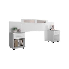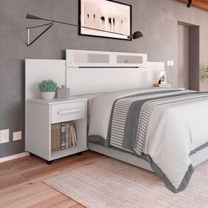 Cabeceira Solteiro Casal Extensível Jade Com 2 Mesas De Cabeceira Branco - Cor: Branco