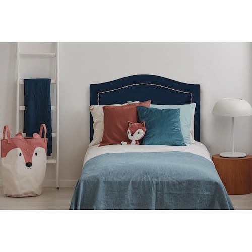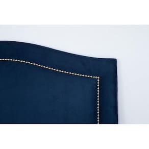 Cabeceira Solteiro Curva 90x90cm Suede Azul - Tachas Prata - Azul Marinho