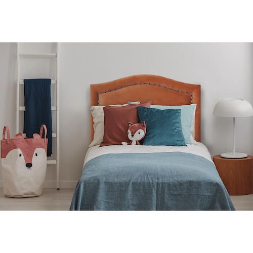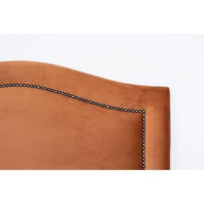 Cabeceira Solteiro Curva 90x90cm Veludo Terracota - Tachas Fumê - Coral