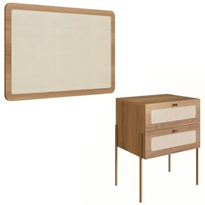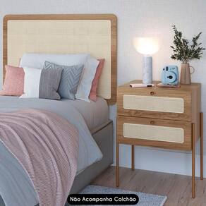 Fabricada em MDP com acabamento BP e detalhes em tela sintética, a Cabeceira Solteiro oferece durabilidade e um toque acolhedor ao quarto. O design retrô sofisticado harmoniza perfeitamente com diversos estilos, enquanto os suportes metálicos garantem uma instalação firme e discreta. Já a Mesa de Cabeceira é ideal para manter o quarto organizado. Com 2 gavetas espaçosas equipadas com corrediças metálicas e puxadores de poliestireno, oferece espaço extra para itens pessoais. Feita em MDP 15 mm e pés metálicos com acabamento epóxi, a mesa combina resistência e sofisticação no Quarto de Solteiro.