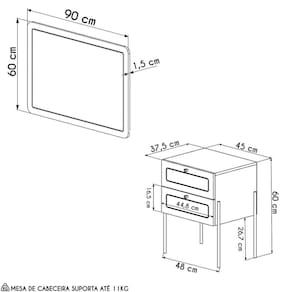 Mesa de Cabeceira: 48 x 60 x 37,5 cm.