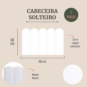 Tamanho solteiro (5 placas): 100cm (comprimento total) x 60cm (altura) x 3 cm (profundidade).