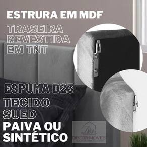 Cabeceira toda revestida em tecido sued, embelezando ainda mais o seu produto. Venha voce tambem adquirir mais esse lindo produto da Caracteristicas: Estrutura em mdf 1 mm; Espuma D23 de 4 cm; Revestida em Sued.