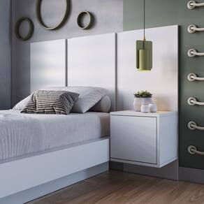 O(a) Cabeceira Solteiro Zurique 1 Porta Branco - Art In Móveis é produzido em MDP na escala de brilho Semi-Brilho, e possui um grau de dificuldade de montagem: Médio.