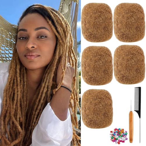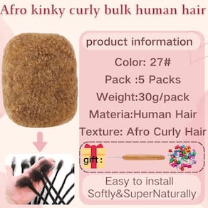 Afro Kinkys cabelo humano a granel para extensões de dreadlock, reparo de locs, torções e tranças, 5 pacotes de 150 gramas, 100% cabelo humano, volume afro crespo, pode ser tingido e descolorido (loiro néctar das flores, 20 cm) - 100% cabelo humano macio: o cabelo crespo afro é feito de 100% cabelo humano, oferecendo um toque incrivelmente macio e sem odores desagradáveis. Este cabelo de alta qualidade pode ser descolorido e tingido enquanto se mistura perfeitamente com o seu próprio cabelo para uma aparência natural. - Estilo de cabelo livre: Com cabelo crespo afro, liberte sua criatividade! Este cabelo versátil permite que você crie torções deslumbrantes de crochê, fabulosas perucas afro, penteados texturizados ou tranças diretamente em seu próprio cabelo, dando a você total liberdade nas opções de estilo para tranças e torções. - O pacote inclui: Cada pacote de cabelo humano afro kinkys pesa 30 g (1,06 oz) e vem em uma variedade de comprimentos de 20 a 25 cm, juntamente com várias opções de cores. Para uma cabeça inteira, sugerimos de 3 a 5 mechas para economizar dinheiro em sua jornada para lindas madeixas. - Compatível com o primeiro temporizador: Instalar o cabelo trançado pode ser assustador para iniciantes, mas nós temos o que você precisa. Se você é novo no uso de extensões loc, sinta-se à vontade para entrar em contato conosco a qualquer momento para obter assistência. Oferecemos um tutorial abrangente sobre extensões de cabelo para tornar sua experiência suave e agradável. - Seleção de cores: Ao escolher a cor do seu cabelo, opte pela cor natural do cabelo se você planeja tingi-lo. Outras cores já passaram por tratamento de cor, portanto, não é aconselhável tingir novamente. Certifique-se de selecionar com sabedoria para alcançar os melhores resultados para o penteado desejado!