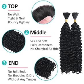 Cabelo Boho para trançar cabelo humano trançado para tranças boho cabelo humano encaracolado para tranças boho sem nós 2 feixes 100 g de cabelo humano a granel ondulado profundo para trançar cor natural - Material de cabelo de alta qualidade: o cabelo humano trançado feito de 100% cabelo humano virgem brasileiro 12A não processado, incrivelmente macio, confortável, suave e fácil de criar extensões de cabelo que adicionam comprimento e volume. - Vantagem do cabelo trançado: o cabelo humano trançado é excepcionalmente durável, isso garante que você possa usar esses penteados com confiança sem se preocupar com danos prematuros ou queda e longa duração. - Característica do cabelo: O cabelo humano crespo encaracolado para microtranças é 100% cabelo humano real, pode ser branqueado, colorido ou tingido, com permanente e estilizado, pontas lisas pré-esticadas. Sem emaranhado, sem queda, sem cheiro e produtos químicos. - Várias opções de cores: oferecemos uma variedade de cores modernas para você escolher, cor natural, P4/27, vinho 99J, gengibre nº 350, nº 27 e nº 4, sem trama, você pode fazer você mesmo de acordo com suas próprias preferências e combinar livremente diferentes tamanhos e cores para mostrar sua beleza. - Comprimento e peso do cabelo trançado: o comprimento do cabelo trançado humano é de 35 a 66 cm disponível, 100 g por pacote, inclui 2 mechas para trançar. Se você preferir cabelos mais cheios, sugerimos que você compre de 3 a 4 pacotes de cabelo humano a granel para trançar.