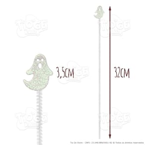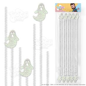 - 1 Pacote com 10 Hastes Flexíveis de Pelúcia na cor Branco com apliques de Fantasma.