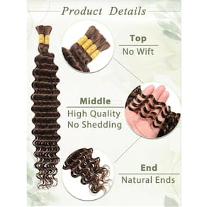 - Qualidade do cabelo humano trançado: o cabelo humano de ondas profundas para microtranças pode ser branqueado; tingido; extremidades lisas pré-esticadas; sem emaranhamento e sem queda. Depois de ser trançado, o cabelo humano trançado pode durar vários meses