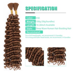 Cabelo humano castanho trançado 100 g 45 cm cabelo humano ondulado profundo cabelo trançado cabelo boêmio encaracolado para trançar cabelo humano 100% brasileiro cabelo humano bariding para tranças - ?Cabelo humano trançado para tranças Boho Dica?Um pacote não é suficiente para criar um penteado, mais pessoas optam por pedir 100 g mais 100 g para poder fazer um penteado mais perfeito - Comprimento e cor do cabelo humano trançado: cabelo humano ondulado profundo para trançar com uma ampla variedade de cores (#1B/#2/#4/#27/#30/#350/#4-27/#99J/#613), comprimentos (40.6-71.1 cm) disponíveis, você pode escolher a combinação perfeita para suas preferências e alcançar o visual desejado - ?Material de cabelo humano trançado? Usamos 100% cabelo humano virgem brasileiro 10A não processado, a textura do cabelo humano boho tranças é incrivelmente macia, suave e fácil de manusear, parecendo muito com cabelo natural - ?Cabelo boho para trançar mais amplamente utilizado? O cabelo encaracolado humano trançado oferece grande versatilidade, não apenas adequado para tranças boêmias, tranças sem nó, tranças boho e tranças de caixa, mas também permite um estilo fácil para diferentes visuais modernos - ?Cabelo humano a granel para trançar longa duração?Devido à sua composição de cabelo real de alta qualidade, o cabelo humano trançado molhado e ondulado é excepcionalmente durável, mantendo seu apelo estético por longos períodos. Isso garante que você possa usar esses penteados com confiança
