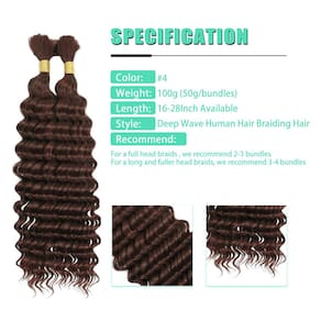 - Comprimento e cor do cabelo humano trançado: cabelo humano ondulado profundo para trançar com uma ampla variedade de cores (#1B/#2/#4/#27/#30/#350/#4-27/#99J/#613), comprimentos (40.6-71.1 cm) disponíveis, você pode escolher a combinação perfeita para suas preferências e alcançar o visual desejado