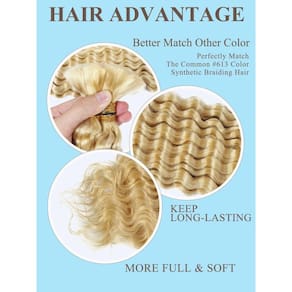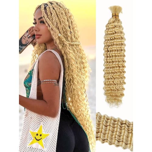 Cabelo Loiro Trançado 613 100 g 40 cm Cabelo Humano Ondulado de Água Profunda para Trançar Sem Trama Pacote Brasileiro Virgem Encaracolado Extensões de Cabelo Humano para Tranças Boho Cabelo Humano Molhado e Ondulado - Importante: mais pessoas optam por pedir 100 g mais 100 g para poder fazer um penteado mais perfeito; Como escolher um penteado e a quantidade de cabelo necessária? Dê uma olhada mais de perto na imagem do meu produto - Comprimento e cor corretos: Cabelo humano para trançar com uma ampla variedade de cores (#1B/#27/#30/#350/#4/#99J/#4-27/#4-30/#613), comprimentos (14-24 polegadas) disponíveis, você pode escolher a combinação perfeita para suas preferências e alcançar o visual desejado - Material de cabelo de alta qualidade: usamos 100% cabelo humano virgem brasileiro 10A não processado, a textura do cabelo humano trançado é incrivelmente macia, suave e fácil de manejar, parecendo muito com cabelo natural - Longa duração: Devido à sua composição de cabelo real de alta qualidade, o cabelo humano trançado molhado e ondulado é excepcionalmente durável. Isso garante que você possa usar esses penteados com confiança sem se preocupar com danos prematuros ou queda - Mais amplamente utilizado: o cabelo humano encaracolado trançado oferece grande versatilidade, não apenas adequado para tranças boêmias, tranças sem nós, tranças boho e tranças de caixa, mas também permitindo um estilo fácil para diferentes visuais modernos
