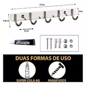 Versatilidade de Uso: Com seus 5 ganchos duplos, oferece ampla capacidade para organizar múltiplos itens de maneira prática e eficiente. Serve para pendurar toalhas e roupões no banheiro, aventais e utensílios na cozinha, ou bolsas e casacos na entrada da casa.