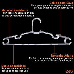 Organize as roupas do seu armário com total praticidade mantendo a qualidade da peça com este Cabide em Acrílico perfeito para casacos, jaquetas e blusas, contando com cava especial para peças com alças. Em tamanho adulto, fabricado em material resistente a até 3kg, comporta diversas peças por vez. Kit com 3 cabides nas , lilás ou transparente. Ideal para uso doméstico, lojas ou lavanderias.