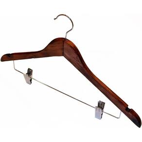 Beleza, praticidade e otimização de espaço em um mesmo produto. Com o Cabide De Madeira Presilha Tailleur da Vizapi, guardar seus conjuntos ficou muito mais fácil. Feito em madeira com gancho de metal e presilhas especiais, possibilita guardar todas as peças juntas com qualidade em apenas um cabide