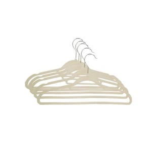 O jogo de cabides de Veludo vem com 5 peças ideais para deixar o interior de seu guarda-roupa mais organizado e tudo em seu devido lugar. O cabide da Quanhe possui gancho feito de Metal, seu aro é produzido em plástico todo revestido de veludo, que o difere dos demais modelos, pois dispõe da vantagem de ser antideslizante, segurando até as roupas de tecidos mais leves.