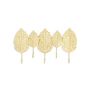 - Incorpora 5 peças de folhas douradas sobrepostas formando 5 ganchos inferiores