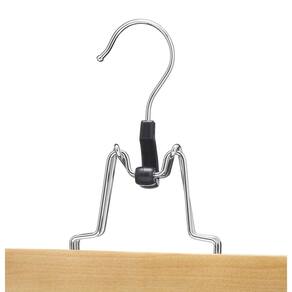 Add a touch of elegance to your closets with these wood slack hangers. These solid wood trouser clamps are perfect for hanging and organizing pants and skirts in any closet. These wood slack hangers feature a glossy natural finish. A chrome swivel hook adds the finishing touch to these stylish wood slack hangers.; ; Brand Name: Whitmor Height: 6-1/2 in. Width: 1 in. Length: 9 in. Material: Wood Color: White Product Type: Slack Hanger Number in Package: 5 pk 1" x 9" x 6.5". Chrome neck. Clear lacquer finished wood.