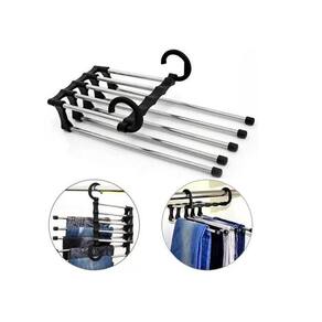 Soluciona o problema de espaço no seu guarda-roupas, colocando cinco peças de roupas no espaço de uma esse múltiplo cabideiro produzido com aço inoxidável extremamente durável. Permite duas funcionalidades tanto horizontal, quanto vertical facilitando a organização e salvando espaço.Usando os dois ganchos, ele fica na horizontal, facilitando o manuseio para colocar e tirar suas calças.Usando um gancho, ele fica na vertical e você economiza espaço de forma rápida e eficiente. Simples assim.Cada cabide possui 5 espaçosESPECIFICAÇÕES:Cor: Preto e Branco.Material: plástico e aço inoxMedida: 34 x 15 x 7 cmCONTÉM:- 1 unidade