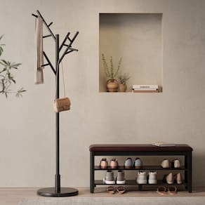- ?Design DIY para qualquer idade?O cabide para árvores apresenta um design DIY, ajustável em 3 alturas. Personalize as posições dos ramos para armazenamento versátil, infundindo sua casa com vitalidade prática e elegante. Imagine uma árvore de casacos, exclusivamente sua, adicionando charme e função à sua casa