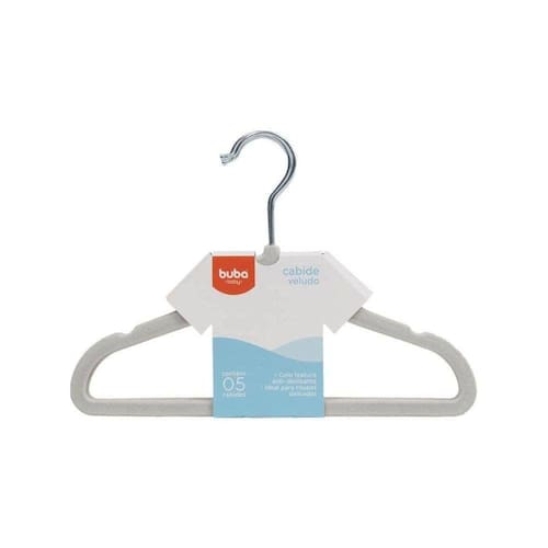 Informações do produto: Cabide veludo - Buba Os cabides de veludo da Buba possuem o tamanho ideal para roupas infantis. Com acabamento flocado, evitando que as roupas escorreguem ou desfiem. Além disso, são finos otimizando o espaço no armário, com curvas que não marcam as roupas.