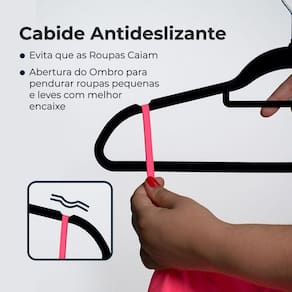 Anti Deslizante: O revestimento em veludo evita que as roupas escorreguem, mantendo-as sempre impecáveis.