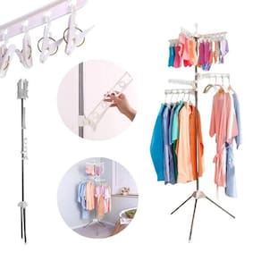 Cabideiro Branco Articulado Varal com Braços Giratórios Cabideiro Branco Articulado Varal com Braços Giratórios ===================================== Perfeito para pendurar roupas longas como vestidos, casacos, camisas e calças, mantendo as peças bem esticadas e arejadas.