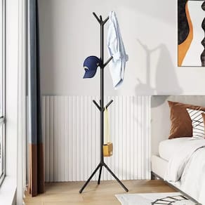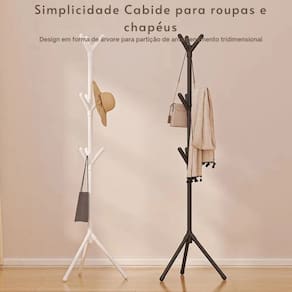 Design elegante e funcional: Estrutura bem desenhada que se adapta a qualquer ambiente, do quarto ao hall de entrada. Materiais de alta qualidade: Fabricado em ferro resistente e plástico reforçado, garantindo longa vida útil sem perder o charme, oferecendo amplo espaço para pendurar casacos, chapéus, bolsas e outros acessórios.