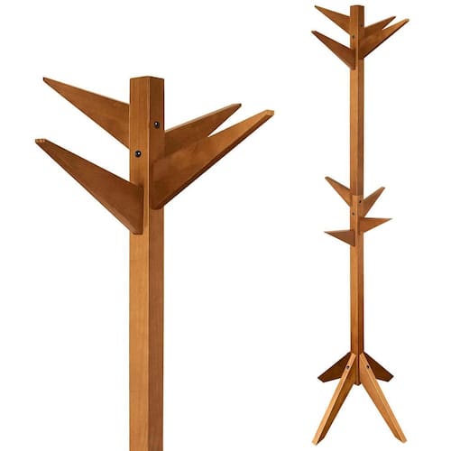 Cabideiro De Pé Mancebo Madeira Reticulado Com Arara Imbuia
