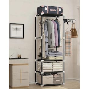 Cabideiro Aço Guarda Roupa Preto Arara para roupas, closet aberto. Possue prateleiras. produto desenvolvido em aço com pintura de proteção, possui rodinhas para facilitar o transporte, além disso com essa arara seu ambiente ficará ainda mais organizado. Dimensões Aproximadas: 55 x 35 x 170 cm Cor: Preto Marca: Não Informado Ean: 7899790933666