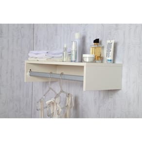 O Cabideiro em MDF é o item ideal para quem quer manter as roupas ventiladas, mas tem espaço limitado. Pode ser utilizado em determinados ambientes, como quartos, lavanderias e banheiros, onde tem dupla função de cabideiro e prateleira. Carga Suportada: 15kg Composição: MDF e Alumínio