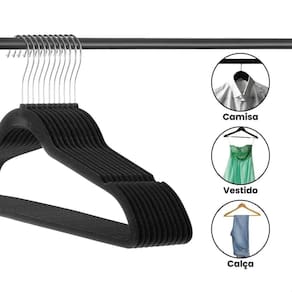 Especificações: Feita com aço cromado e plástico; Corpo flexível. Mais resistente a quebras; Protege suas roupas, evitando marcas e deformações; Suporta até 4 kg por cabide; Tecnologia antiderrapante; Marca: kontuz.