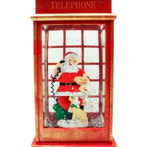 1 Luminária Decorativa Cabine Telefone Inglês Papai Noel Com Cachorro De 26cm;