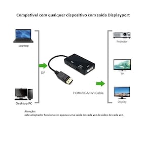 Cabo Adaptador Displayport Para Hdmi 4k Vga Dvi 3840x2160 30hz Adaptador DisplayPort DP para HDMI / DVI / VGA