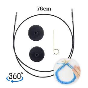 Cabo para Agulha Circular Intercambiável 360º Black Silver - Knitpro Tamanho: 76cm Perfeito para projetos maiores, o Cabo Intercambiável KnitPro Black Silver com tecnologia 360º oferece máxima liberdade de movimento e evita torções, mantendo o fio sempre na posição ideal. Feito com materiais resistentes e flexíveis, o cabo se acomoda de forma plana, sem dobras, sendo fácil de guardar e manusear. Possui união suave, que permite que os pontos deslizem pelas agulhas sem esforço, ideal para quem busca fluidez no tricô. O cabo vem acompanhado de duas tampas de extremidade e uma chave de aperto, que garante uma fixação segura e prática. Projetado especialmente para ser com as agulhas de madeira Ginger da KnitPro. Contém: - 01 Cabo - 01 Chave de cabo. - 02 Tampas de extremidade. Marca: KnitPro Modelo: Cabo Para Agulha Circular Intercambiável. Referência: 1067 Cor: Preto. Dimensões do produto embalado: 10 10 10 cm. Marca: Não Informado