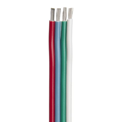 100 pés de cabo liso vermelho/azul claro/verde/branco de 18/4 AWG -