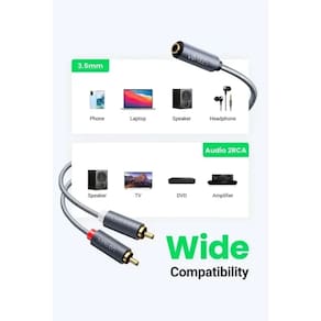 Cabo de áudio P2 fêmea para 2 RCA macho, 1 metro de comprimento, cor preta. Conector P2 fêmea para conectar dispositivos de áudio com saída P2 (como smartphones, tablets, notebooks) e 2 conectores RCA macho para conectar em sistemas de som estéreo (como amplificadores, receivers, caixas de som).Vendido e entregue por TAMBU STORE