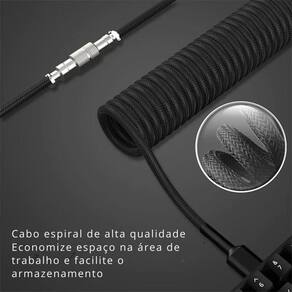 Design enrolado aviador para um toque premium no setup Material trançado de alta durabilidade Conectividade USB-C para USB com excelente desempenho Compatível com teclados mecânicos USB-C Comprimento de 3 metros para mais flexibilidade