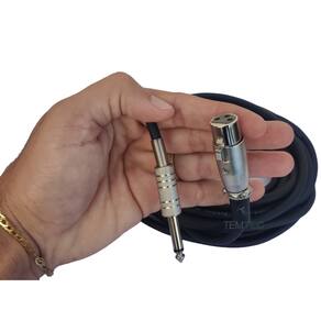 Cabo profissional com conector P10 e canon XLR, um conector que é utilizado em microfones e outros equipamentos de som.