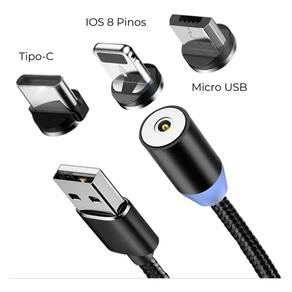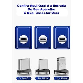Modelo: pcm Conector: acompanha 3 conectores, sendo eles, micro usb, usb tipe c, light Voltagem máxima: 12v Imã: neodímio de alta qualidade Revestimento: nylon Comprimento: 1 metro Transferência de dados: não