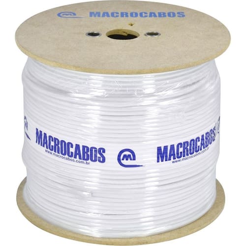 Cabo coaxial rgc-59 67% branco bobina 300 metros Descrição: Cabo coaxial 59 75 ohms; Material condutor aço cobreado; Diam. Mm 0.8; Material isolação pebd + agente expansivo; Diam. Mm 3.7; Blindagem primária fita de poliéster aluminizado; Blindagem secundária alumínio trefilado 64 x 0,16 mm; Percent. Da malha 67%; Diam. Da capa 6.0; Ideal para instalações de câmeras, equipamentos de vídeo, antenas uhf/vhf, catv sistemas de tv a cabo , instalações de circuito fechado de tv; Número homologação anatel: 0395-13-6049;
