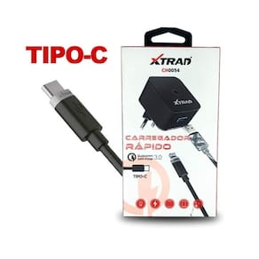 Carregador turbo USB-C com tecnologia Qualcomm Quick Charge, identificação automática da necessidade de corrente do dispositivo, potência máxima de 18W.Tipo