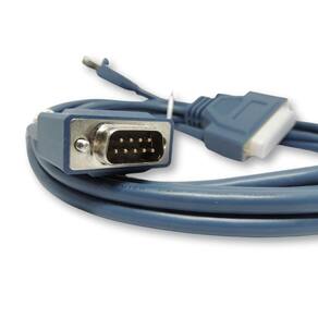 Cabo console multifuncional V5-Aux Cable com 3 metros de comprimento, projetado para conexão de terminais a equipamentos de rede e modems. Uma extremidade possui conector RJ45 padrão console; a outra extremidade oferece dois conectores seriais - DB25 macho e DB9 macho - para suporte a portas AUX e DTE/DCE. Especificações: