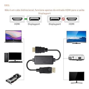 Importante: não funciona no sentido contrário DisplayPort para HDMI