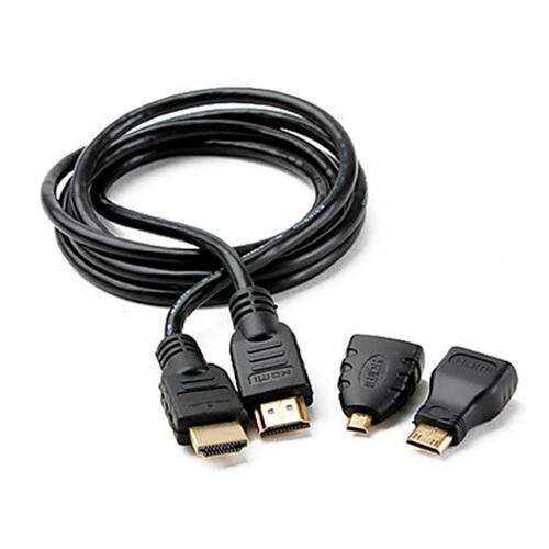 - HDMI macho para cabo Masculino + Mini HDMI + adaptador Micro HDMI. - Cor: Preto - Material: Plástico - Modelos compatíveis: PS3, XBOX360, LG, HTC, Samsung, etc - Função: HDMI 1.3, 1080P - Comprimento do Cabo: 150m - Lista de embalagem: