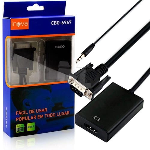 Cabo Conversor Hdmi Para Vga - Inova Apresentamos o Cabo Conversor HDMI para VGA, um produto essencial para conectar dispositivos com diferentes interfaces de vídeo. Com este cabo de alta qualidade, você poderá desfrutar de uma transmissão de sinal estável e de excelente qualidade. O cabo conversor HDMI para VGA permite conectar dispositivos com saída HDMI, como laptops, consoles de videogame e media players, a monitores, projetores ou TVs com entrada VGA. Compatível com resoluções de até 1080p, ele garante uma experiência visual nítida e detalhada. Desfrute da praticidade e versatilidade do Cabo Conversor HDMI para VGA. Com sua instalação simples e rápida, você poderá conectar seus dispositivos em questão de segundos. Aproveite a qualidade de imagem e a compatibilidade que este cabo oferece e expanda suas opções de conexão de forma fácil e eficiente. Código: 098646 Dimensões aprox. da embalagem em cm: 19x03x10 Peso liq. Aproximado do produto na embalagem: 84g Referência do Modelo: CBO-6967 Conteúdo da Embalagem: 01 Cabo Conversor Composição/material: Plástico, pequenas peças de metal e componentes eletrônicos Garantia: 90 dias contra defeitos de fabricação pelo fabricante. Imagens meramente ilustrativas. As cores e tonalidades podem variar. Tipos de Cabos - HDMI VGA Ean: 7899085490881